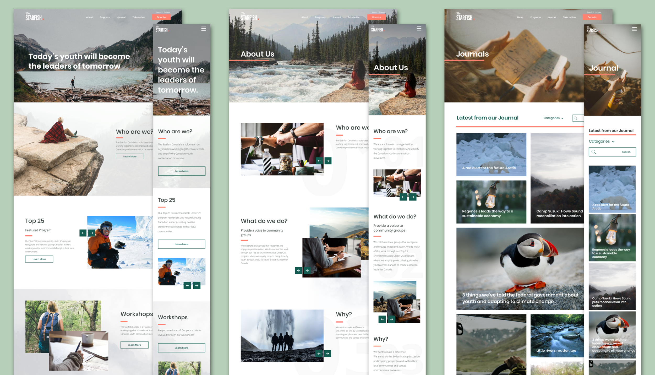 The Starfish Canada is a volunteer run organization working to celebrate and amplify the impact that Canadian youths create through their own conservation initiatives. The founder and CEO of The Starfish Canada came to us for optimization of the current website for web and mobile.